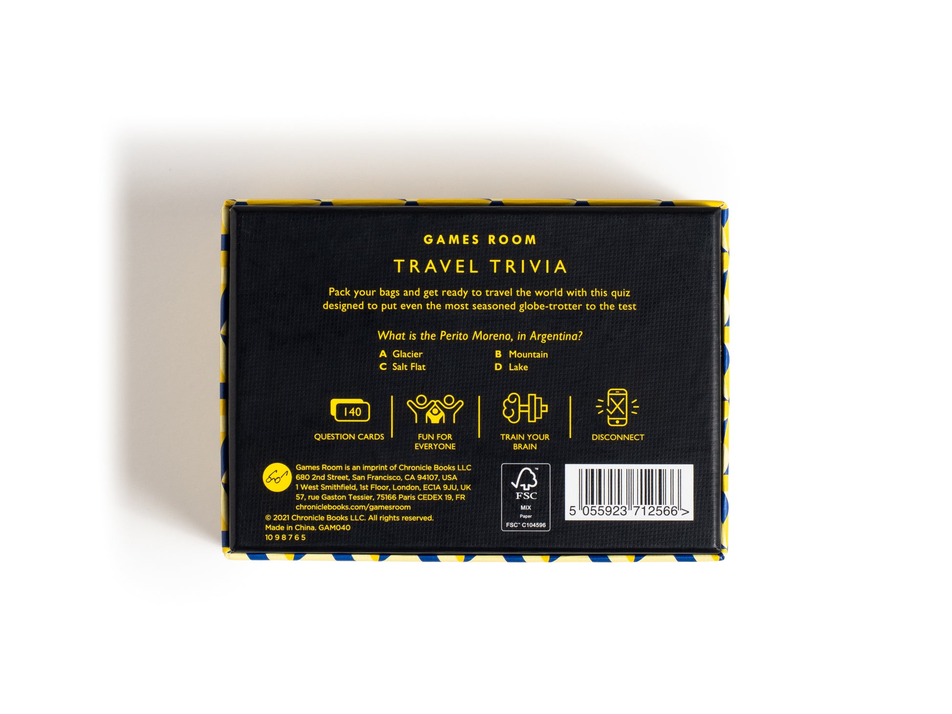 Empaca tus maletas y prepárate para viajar por el mundo con este último Cuestionario de viajes, que incluye 140 tarjetas de preguntas con respuestas de opción múltiple. Presentado en caja con estampado geométrico. Instrucciones completas incluidas.