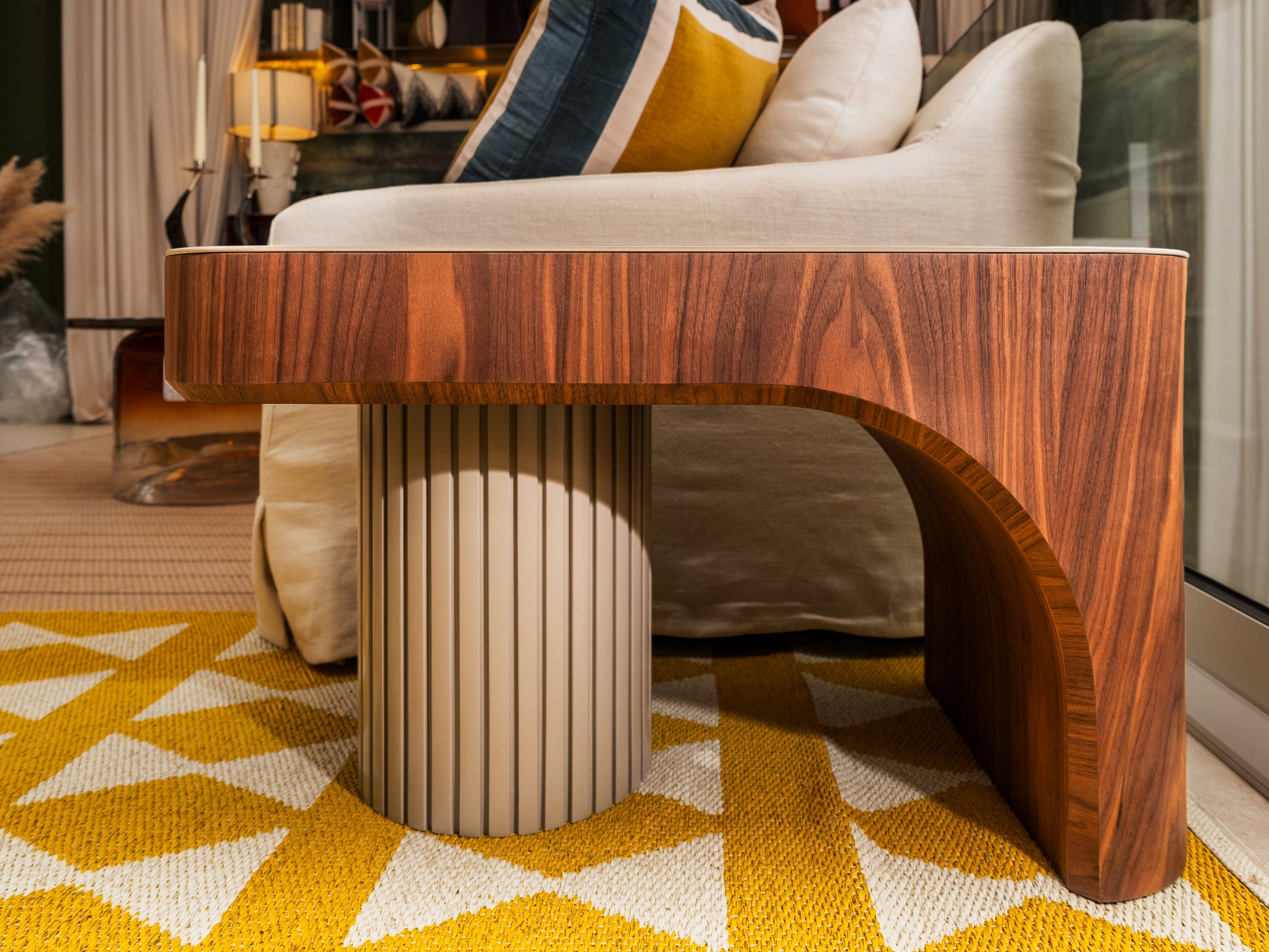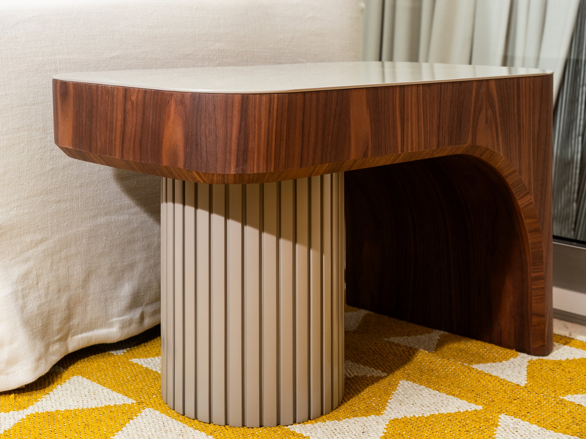 Material: Vidrio y madera de nogal.