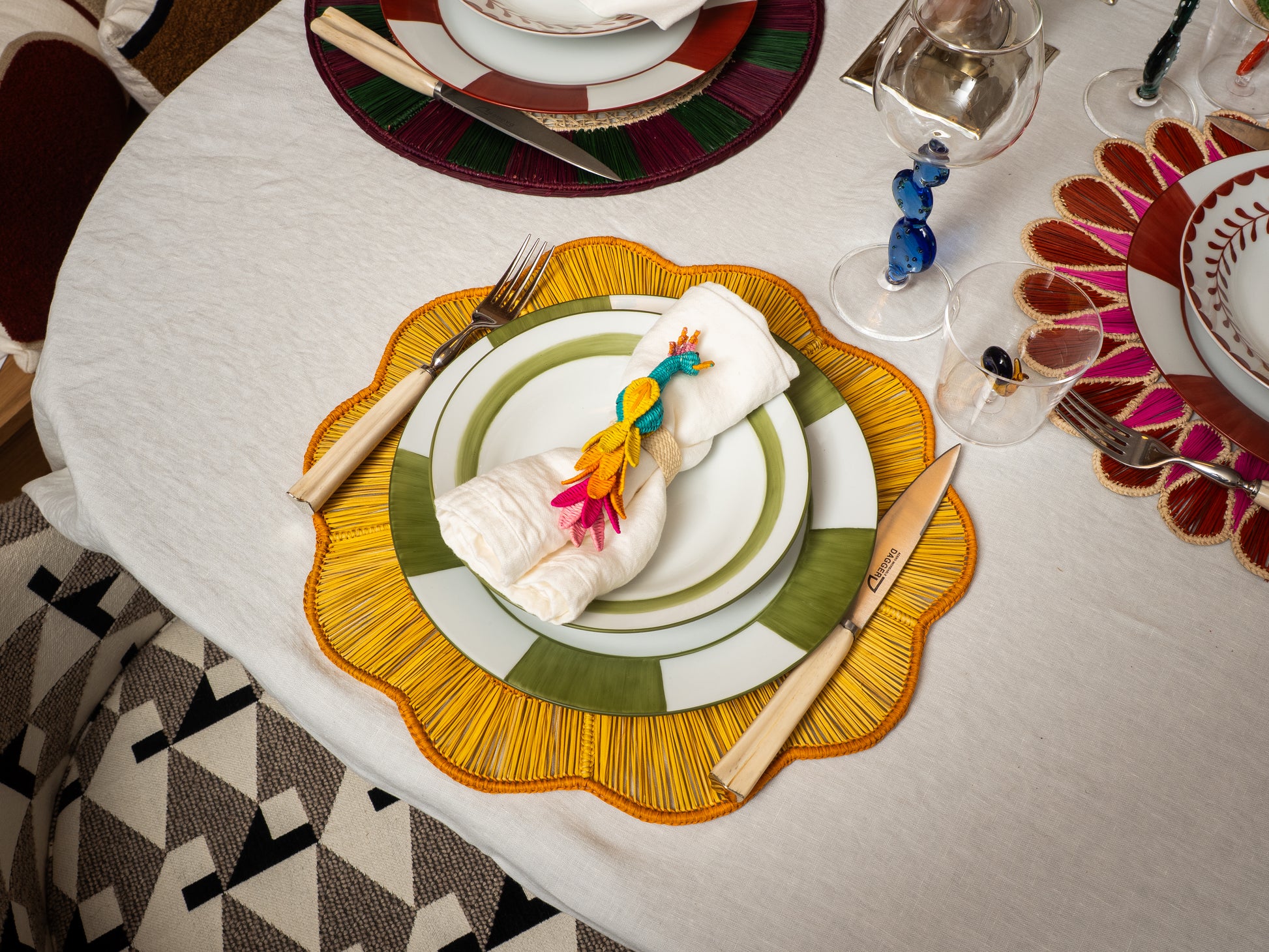 Estos servilleteros están elaborados en palma toquilla por artesanas de Sandoná, en el sur de Colombia.